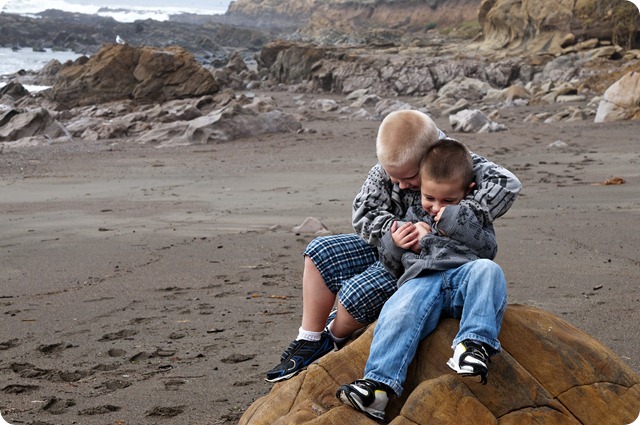 The next day we took a drive down to the pier by the Hearst Castle, and the boys loved being out on the ocean (sort of). They were really cute together, too. :)